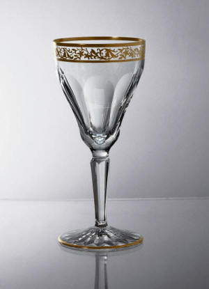hand cut 24% lead crystal, 24ct gold rim, engraved gold pattern below
